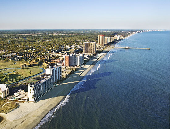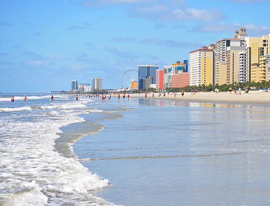 Myrtle Beach is located on the gorgeous South Carolina coast. With the Atlantic to the east and Intracoastal Waterway to the west, Myrtle Beach is a beautiful southern gem surrounded by water. For college students, families, and retirees, Myrtle Beach is a perfect spot for an unforgettable vacation. Whether you’re looking to take in some sun on the beach or play a round of 18 in the "Golf Capital of the World,"" Myrtle Beach has something for everyone.